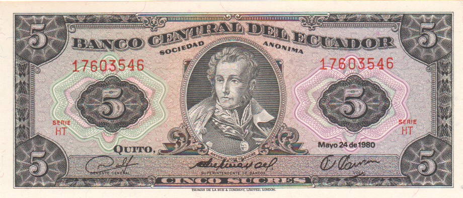 Ecuador 5 Sucres, 24. 5.1980113c5 Sucres24. 5.1980UNC£3.50