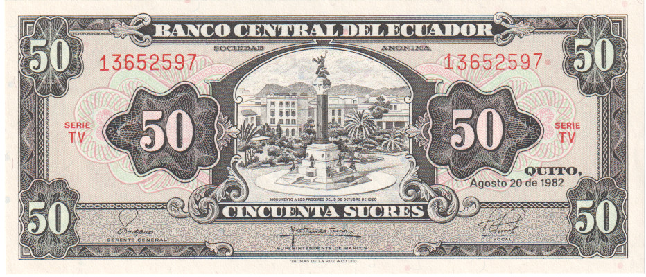 Ecuador 50 Sucres, 20.8.1982116e50 Sucres20.8.1982UNC£10.00