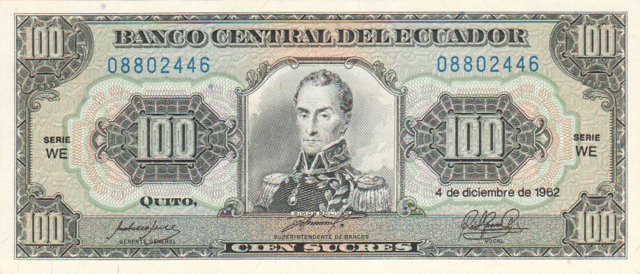 Ecuador 100 Sucres,  4.12.1962117a100 Sucres 4.12.1962UNC£32.00