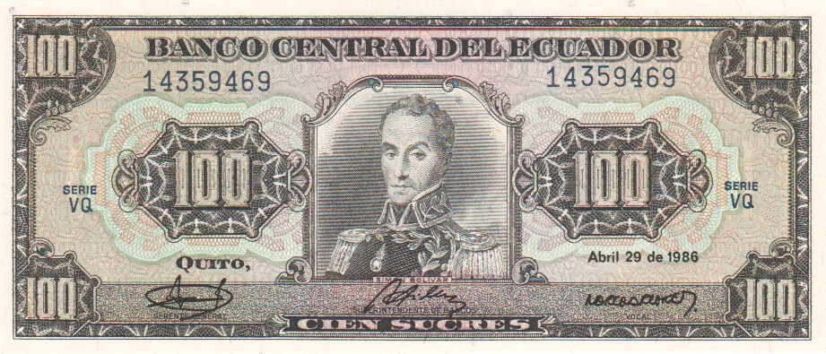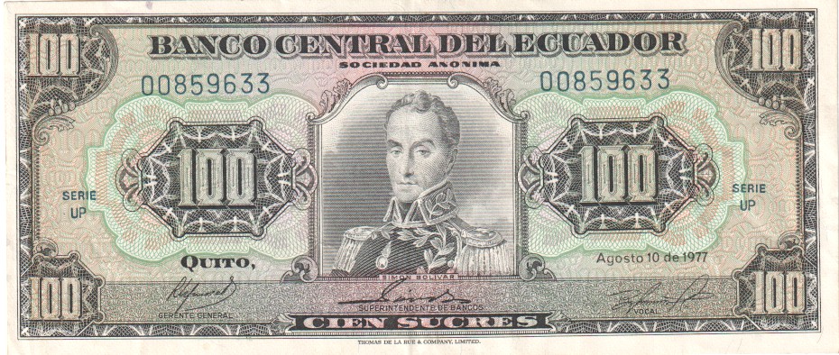Ecuador 100 Sucres, 10. 8.1977118b100 Sucres10. 8.1977EF£12.00