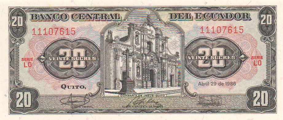 Ecuador 20 Sucres, 29. 4.1986121A20 Sucres29. 4.1986UNC£3.50