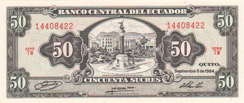 Ecuador 50 Sucres,  5. 9.1984122a50 Sucres 5. 9.1984UNC£5.00
