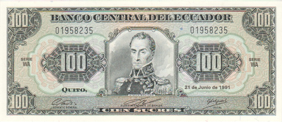Ecuador 100 Sucres, 11.10.1991123Aa100 Sucres11.10.1991UNC£3.50