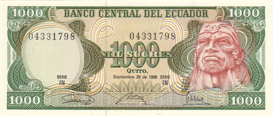 Ecuador 1000 Sucres, 29. 9.1986125a1000 Sucres29. 9.1986UNC£11.00