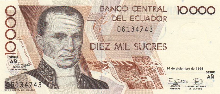 Ecuador 10,000 Sucres, 14.12.1998127c10,000 Sucres14.12.1998UNC£7.00