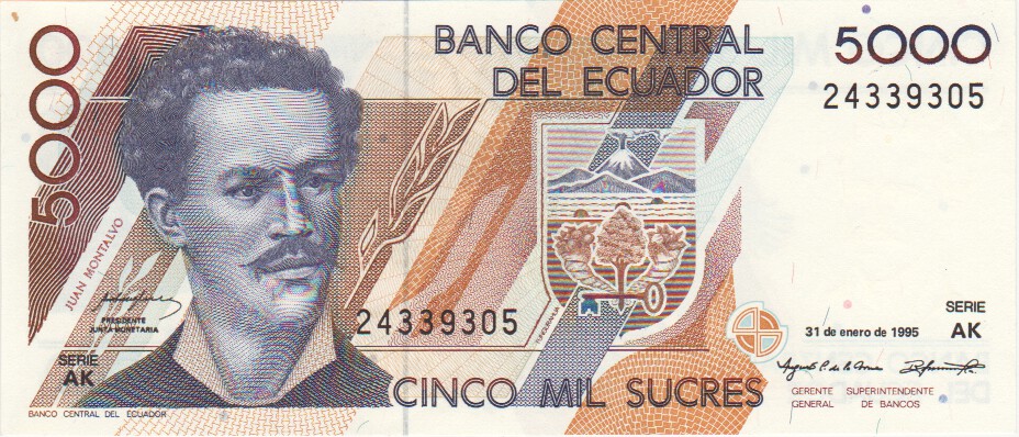 Ecuador 5000 Sucres,  6. 3.1999128c5000 Sucres 6. 3.1999UNC£5.00