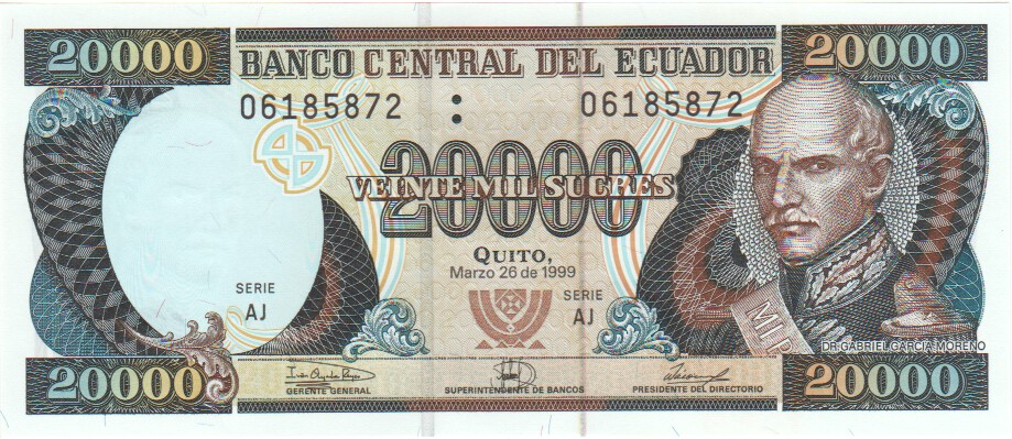 Ecuador 20,000 Sucres, 12. 7.1999129f20,000 Sucres12. 7.1999UNC£8.00