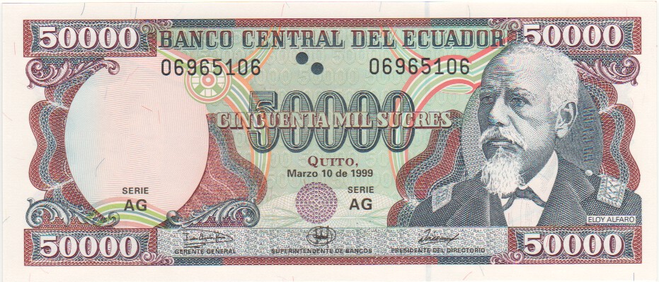 Ecuador 50,000 Sucres, 12. 7.1999130d50,000 Sucres12. 7.1999UNC£8.00