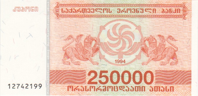 Georgia 250,000 Laris, 199450250,000 Laris1994UNC£3.50