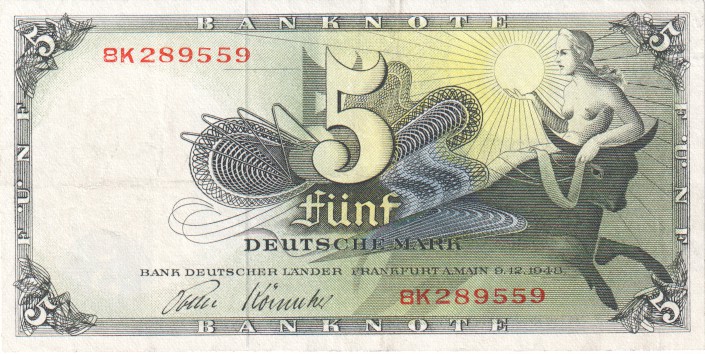 German Federal Republic 5 Deutsche Mark,  9.12.194813a5 Deutsche Mark 9.12.1948VF£30.00
