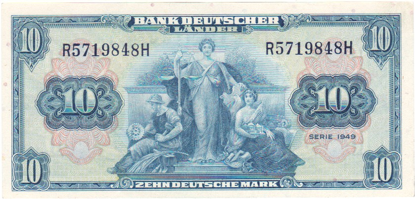 German Federal Republic 10 Deutsche Mark, 22. 8.194916a10 Deutsche Mark22. 8.1949F+£15.00