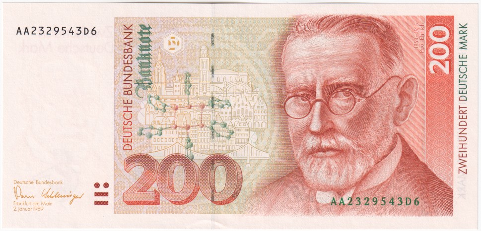 German Federal Republic 200 Deutsche Mark,  2. 1.198942a200 Deutsche Mark 2. 1.1989UNC£300.00