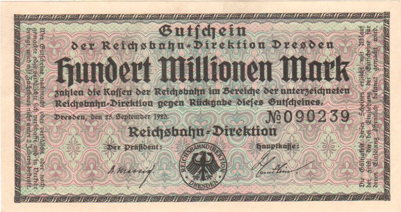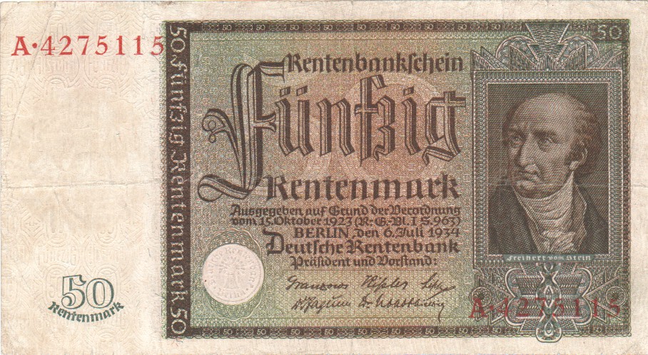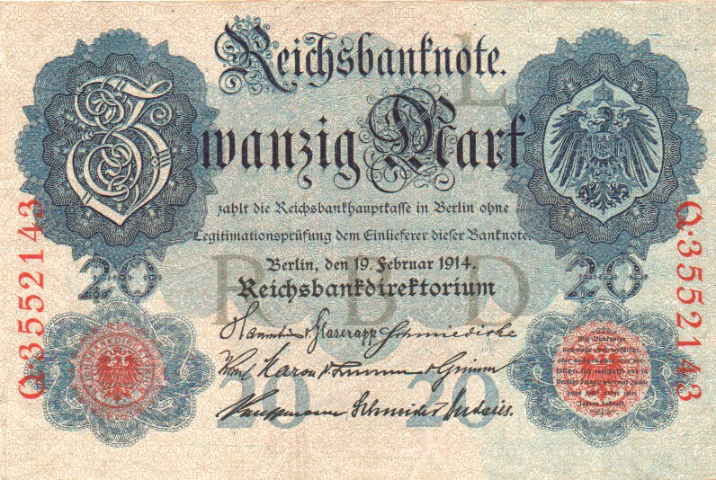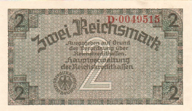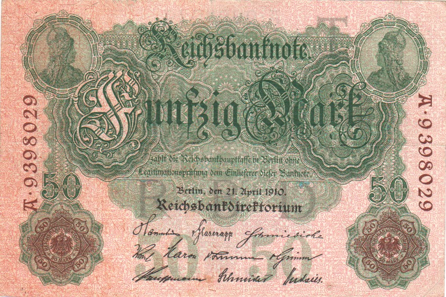 image Ref Description Date Grade Price Other Information 41 50 Mark 21. 4.1910 F+/VF £3.00 41 50 Mark 21. 4.1910 F £2.00 44b 1000 Mark 21. 4.1910 UNC £5.50 44b 1000 Mark 21. 4.1910 aUNC £4.50 44b 1000 Mark 21. 4.1910 EF £3.50 44b 1000 Mark 21. 4.1910 VF/VF+ £2.50 45 1000 Mark 21. 4.1910 aUNC £4.50 45 1000 Mark 21. 4.1910 EF £2.80 46a 20 Mark 19. 2.1914 VF £40.00 57 20 Mark 20. 2.1918 EF/aUNC £9.50 65 50 Mark 30.11.1918 VF+ £18.00 66 50 Mark 24. 6.1919 EF £3.00 67a 10 Mark 6. 2.1920 UNC £6.00 67a 10 Mark 6. 2.1920 aUNC £4.00 67a 10 Mark 6. 2.1920 EF £3.00 80 50,000 Mark 19.11.1922 aUNC £8.00 83a 100,000 Mark 1. 2.1923 UNC £12.00 85a 20,000 Mark 20. 2.1923 EF £2.00 85b 20,000 Mark 20. 2.1923 EF £2.00 85b 20,000 Mark 20. 2.1923 VF+ £1.50 88b 500,000 Mark 1. 5.1923 UNC £15.00 172 50 Rentenmark 6. 7.1934 F £225.00 173b 1 Rentenmark 30. 1.1937 UNC £12.00 174b 2 Rentenmark 30. 1.1937 UNC £12.00 Allied Military Currency WWII. 191a 1/2 Mark 1944 VF+ £6.00 191a 1/2 Mark 1944 VF £4.50 Konversionskasse fur Deutsche Auslandsschulde. 199 5 Reichsmark 1933 UNC £28.00 Perforated "ENTWERTET" 200 10 Reichsmark 1933 UNC £40.00 Perforated "ENTWERTET" 207 5 Reichsmark 1934 UNC £28.00 Perforated "ENTWERTET" 208 10 Reichsmark 1934 UNC £40.00 Perforated "WERTLOS" Bayerische Staatsbank - - 100 Million Mark 20. 9.1923 UNC £8.00 Bayerische Notenbank S-927 50,000 Mark 15. 3.1923 aUNC £22.00 S-930 500,000 Mark 18. 8.1923 aUNC £28.00 S-931 1,000,000 Mark 20. 8.1923 UNC £12.00 Sachsische Bank zu Dresden - Bank of Saxony S-959 50,000 Mark 25. 7.1923 UNC £12.00 S-959 50,000 Mark 25. 7.1923 aUNC £10.00 Deutsche Reichsbahn Berlin S-1011 1 Million Mark 12. 8.1923 UNC £10.00 S-1012c 2 Million Mark 20. 8.1923 UNC £10.00 S-1013b 5 Million Mark 22. 8.1923 UNC £10.00 S-1014 10 Million Mark 2. 9.1923 UNC £12.00 S-1014 10 Million Mark 2. 9.1923 EF £8.00 S-1014 10 Million Mark 2. 9.1923 aEF £5.00 S-1018 200 Million Mark 10.10.1923 EF £8.00 Regional Railroad Office, Cassel S-1166 100 Milliarden Mark 24.10.1923 F+/VF £8.00 Regional Railroad Office, Dresden S-1171 500,000 Mark 11. 8.1923 VF+ £7.00 S-1176 5 Million Mark 21. 8.1923 EF £10.00 S-1176 5 Million Mark 21. 8.1923 VF+ £8.00 S-1177 100 Million Mark 25. 9.1923 EF £15.00 Regional Railroad Office, Frankfurt am Main S-1216 500,000 Mark 10.18.1923 EF £15.00 - - 5 Million Mark 1. 9.1923 aEF £8.00 Tiny piece missing from bottom left corner State Loan Bank Currency Notes, Eastern Bank of Commerce and Industry, Posen (Poznan) R123 3 Rubel 17. 4.1916 aF £25.00 Circulated in Lithuania until 1922. R124 10 Rubel 17. 4.1916 VG £35.00 Circulated in Lithuania until 1922. State Loan Bank East, Kowno (Kaunas) R127 1/2 Mark 4. 4.1918 VG/F £20.00 Circulated in Lithuania until 1922. Reich's Credit Treasury notes. R136 1 Reichsmark 1939 VF+ £4.00 R137b 2 Reichsmark (1940-45) VF+ £18.00 R138a 5 Reichsmark (1940-45) UNC £8.00 R138a 5 Reichsmark (1940-45) EF £6.00 R138a 5 Reichsmark (1940-45) VF £4.00 Auxiliary Payment Certificates, German Armed Forces. M39 5 Reichsmark 15. 9.1944 UNC £15.00 M40 10 Mark 15. 9.1944 UNC £11.00 M40 10 Mark 15. 9.1944 VF £5.50