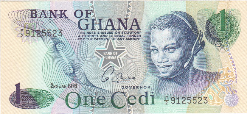 Ghana 1 Cedi,  2. 1.197613c1 Cedi 2. 1.1976UNC£6.00
