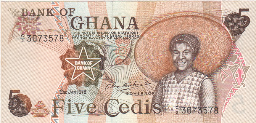 Ghana 5 Cedis,  4. 7.197715b5 Cedis 4. 7.1977UNC£6.00