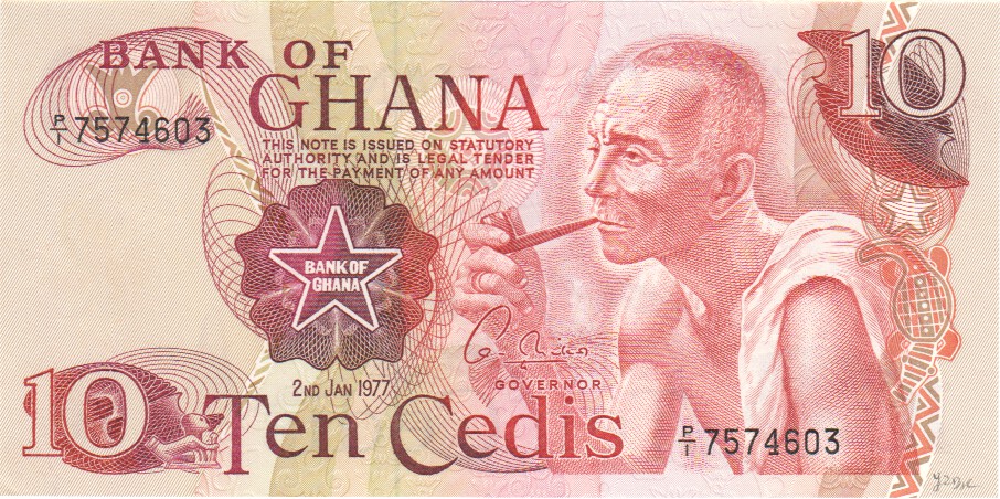Ghana 10 Cedis,  2. 1.197816f10 Cedis 2. 1.1978UNC£3.50