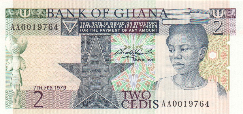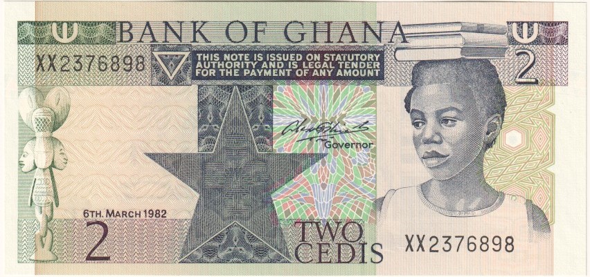 Ghana 2 Cedis,  6. 3.198218d2 Cedis 6. 3.1982UNC£9.00prefix XX, replacement