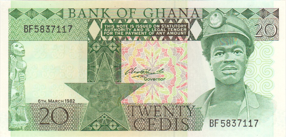 Ghana 20 Cedis,  6. 3.198221c20 Cedis 6. 3.1982UNC£16.00