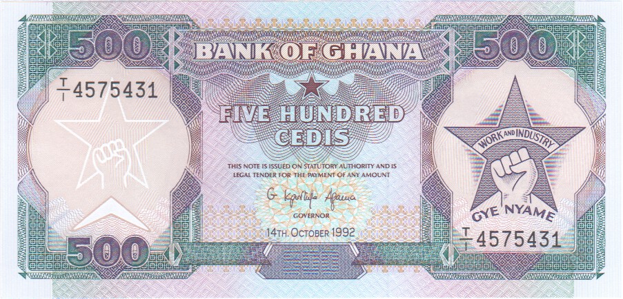 Ghana 500 Cedis, 10. 6.199428c500 Cedis10. 6.1994UNC£8.00