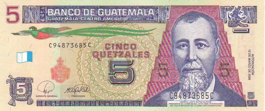 Guatemala 5 Quetzales, 12. 3.20081165 Quetzales12. 3.2008UNC£2.00
