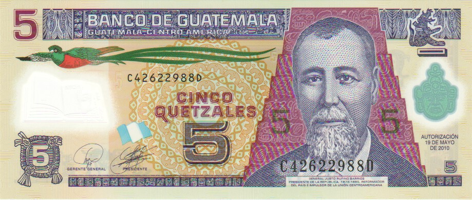 Guatemala 5 Quetzales, 19. 5.2010122a5 Quetzales19. 5.2010UNC£1.50Polymer note