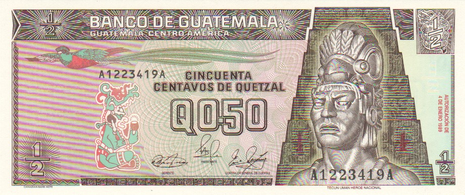Guatemala ½ Quetzal,  4. 1.198972a½ Quetzal 4. 1.1989UNC£1.50