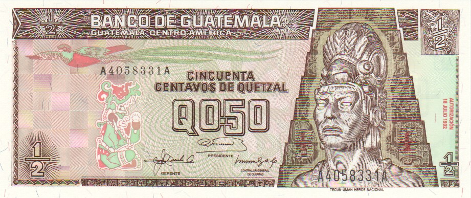 Guatemala ½ Quetzal, 16. 7.199279½ Quetzal16. 7.1992UNC£2.50