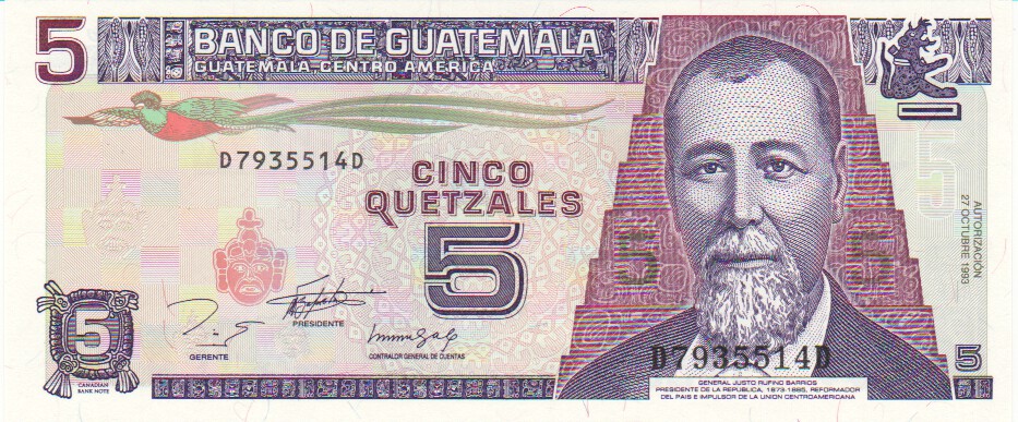 Guatemala 5 Quetzales, 27.10.199388a5 Quetzales27.10.1993UNC£5.00