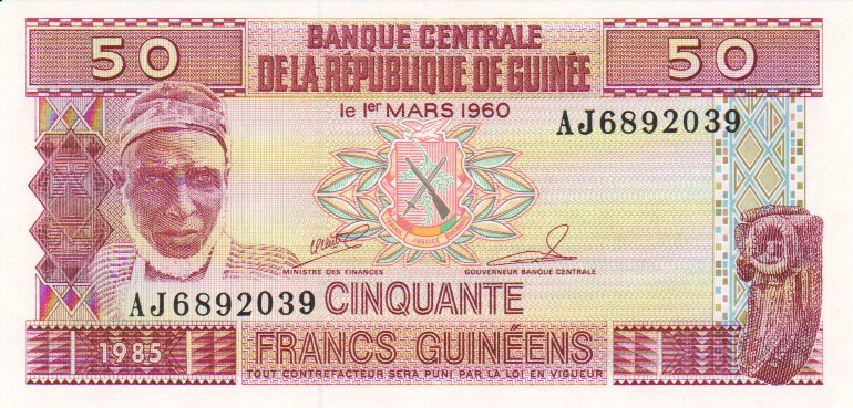 Guinea 50 Francs, 198529a50 Francs1985UNC£4.00