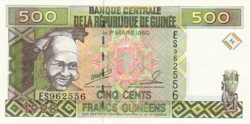 Guinea 500 Francs, 199836500 Francs1998UNC£2.00