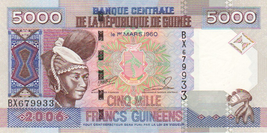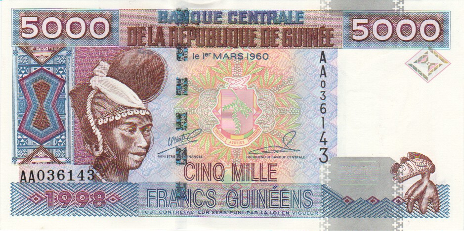 Guinea 5000 Francs, 1998385000 Francs1998UNC£6.00