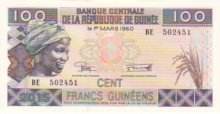 Guinea 100 Francs, 2015A47100 Francs2015UNC£1.00