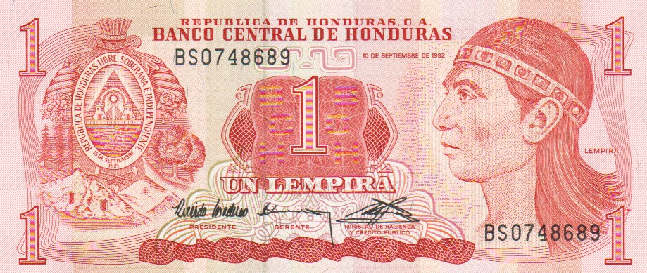 Honduras 1 Lempira, 10. 9.1992711 Lempira10. 9.1992UNC£1.40