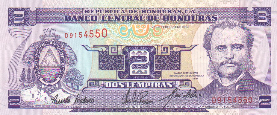 Honduras 2 Lempiras, 25. 2.199372b2 Lempiras25. 2.1993UNC£2.50
