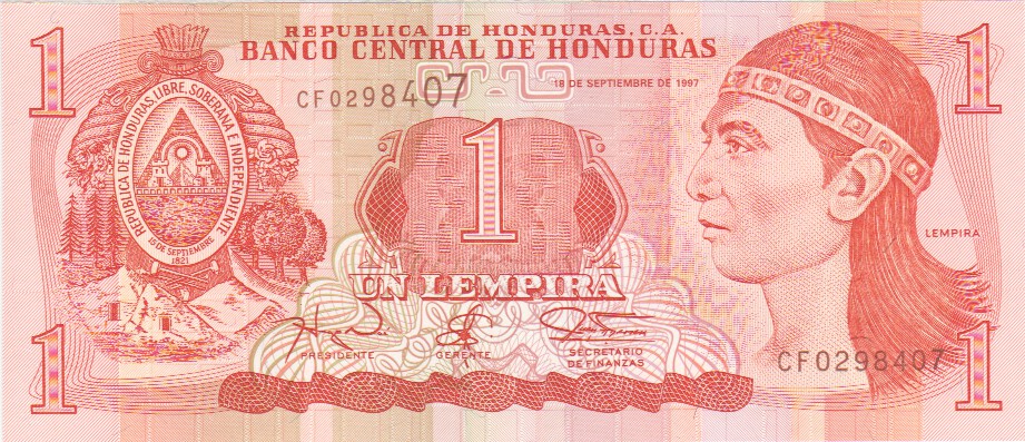 Honduras 1 Lempira, 18. 9.199779A1 Lempira18. 9.1997UNC£1.00
