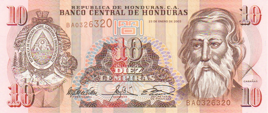 Honduras 10 Lempiras, 23. 1.200386b10 Lempiras23. 1.2003UNC£5.00