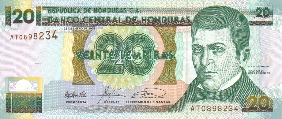 Honduras 20 Lempiras,  1. 3.2012100a20 Lempiras 1. 3.2012UNC£3.00