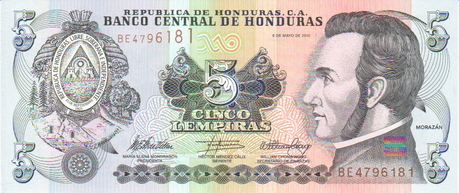 Honduras 5 Lempiras,  6. 5.201091c5 Lempiras 6. 5.2010UNC£2.00