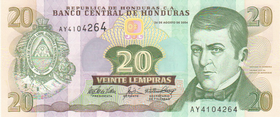 Honduras 20 Lempiras, 26. 8.20049220 Lempiras26. 8.2004UNC£3.00