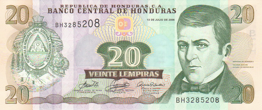 Honduras 20 Lempiras, 13. 7.200693a20 Lempiras13. 7.2006UNC£3.00
