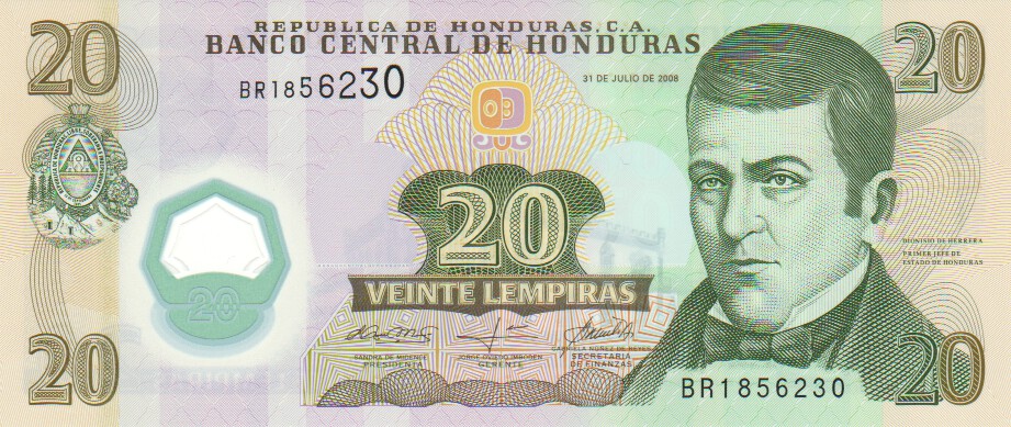 Honduras 20 Lempiras, 31.7.20089520 Lempiras31.7.2008UNC£3.00polymer