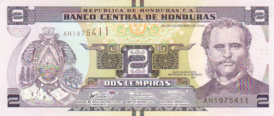 Honduras 2 Lempiras,  1. 3.201297a2 Lempiras 1. 3.2012UNC£0.80