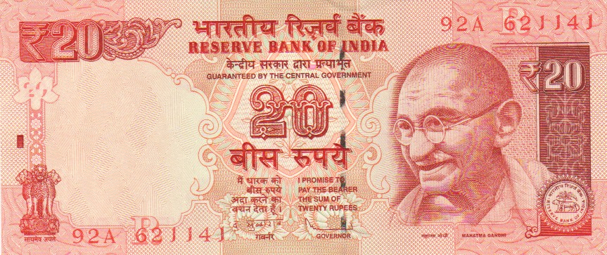 India 20 Rupees, 201210320 Rupees2012UNC£1.00