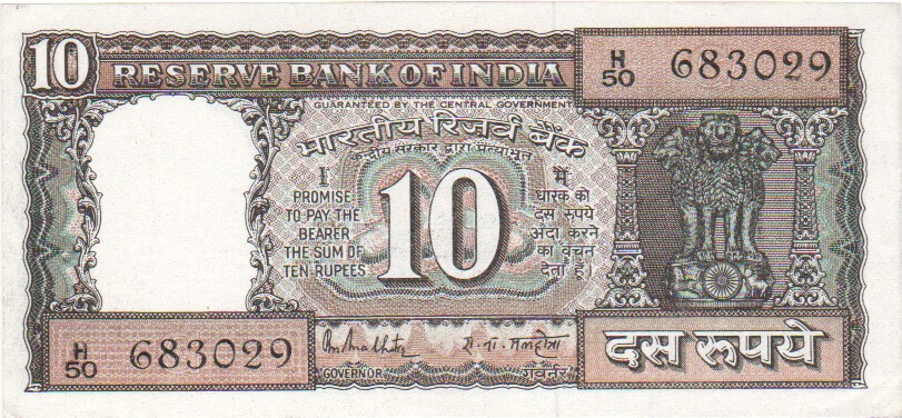 India 10 Rupees, ND6010 RupeesNDaUNC£2.00s.h.
