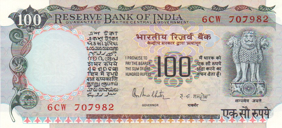 India 100 Rupees, (1979)86100 Rupees(1979)VF+£4.50s.h.