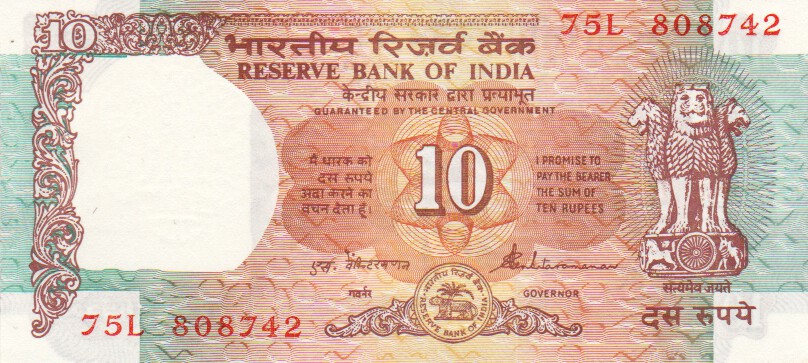 India 10 Rupees, (1992-)8810 Rupees(1992-)UNC£2.00s.h.