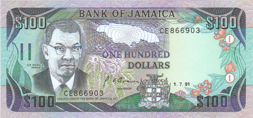 Jamaica 100 Dollars,  1. 2. 199375c100 Dollars 1. 2. 1993EF£8.00