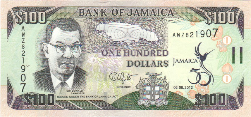 Jamaica 100 Dollars,  6. 8.201290100 Dollars 6. 8.2012UNC£3.00