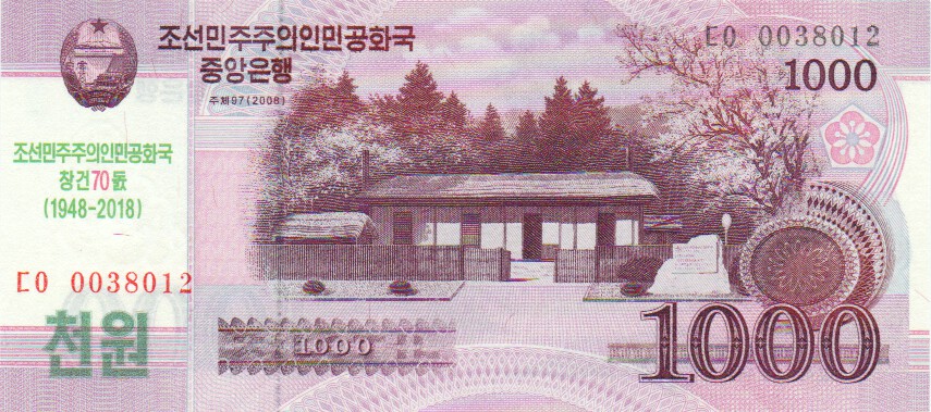 Korea 2 1000 Won, 200864s1000 Won2008UNC£6.00Specimen