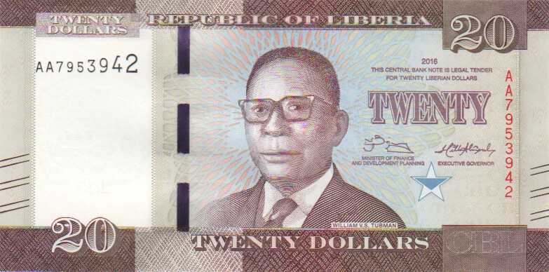 Liberia 20 Dollars, 201633b20 Dollars2016UNC£2.00